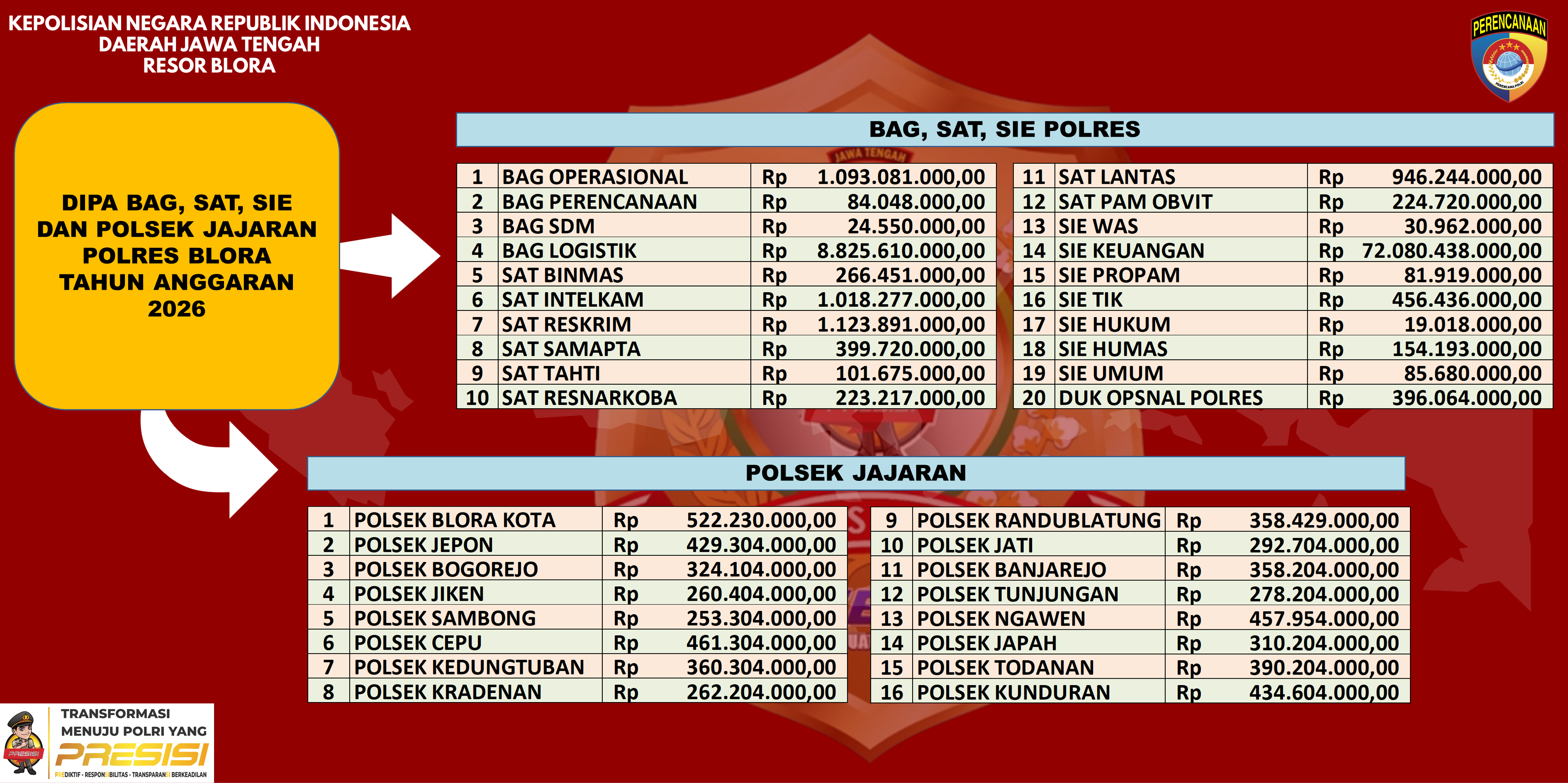 • 04/21/2026 - 03:07 Polsek Sambong Amankan Turnamen Bola Voli "Dukuh Delok Cup I" di Desa Pojokwatu Blora – Polsek Sambong melaksanakan pengamanan turnamen bola voli lokal "Dukuh Delok Cup I" antar desa se-Kecamatan Sambong dan sekitarnya, Senin malam, 20 April 2026. Kegiatan digelar di lapangan bola voli Dukuh Delok RT 002 RW 003, Desa Pojokwatu, Kecamatan Sambong, Kabupaten Blora, mulai pukul 20.00 WIB.Turnamen yang diikuti 16 tim ini disaksikan sekitar 250 penonton. Pada malam tersebut dipertandingkan dua sesi, yaitu sesi 1 antara tim Karangboyo melawan Ngelo dan sesi 2 mempertemukan tim Menggung melawan Gadu. Pengamanan melibatkan personel gabungan dari Polsek Sambong Aipda Parit dan Aipda Kukuh Budi, Koramil Sambong Serka Utoyo, serta 10 orang linmas dan pam internal.Kapolsek Sambong AKP Subardi menyampaikan, kehadiran personel untuk memastikan kegiatan masyarakat berjalan aman dan tertib. “Sinergi Polri, TNI, dan pam swakarsa di lapangan untuk mencegah gangguan kamtibmas sekaligus memberi rasa aman bagi pemain dan penonton,” ujarnya. Hingga laporan dibuat, kegiatan masih berlangsung dalam situasi aman dan tertib.