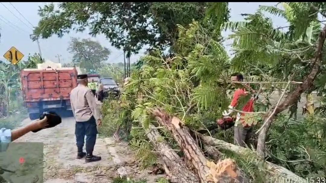 BLORA – Hujan deras disertai angin kencang atau puting beliung yang melanda wilayah Randublatung, Blora, pada Jumat (17/10/2025) sore mengakibatkan sebuah pohon besar tumbang dan menutup total akses Jalan Raya Randublatung-Keradenan, tepatnya di Desa Temulus. Polsek Randublatung bergerak cepat ke lokasi untuk melakukan penanganan dan mengamankan arus lalu lintas.