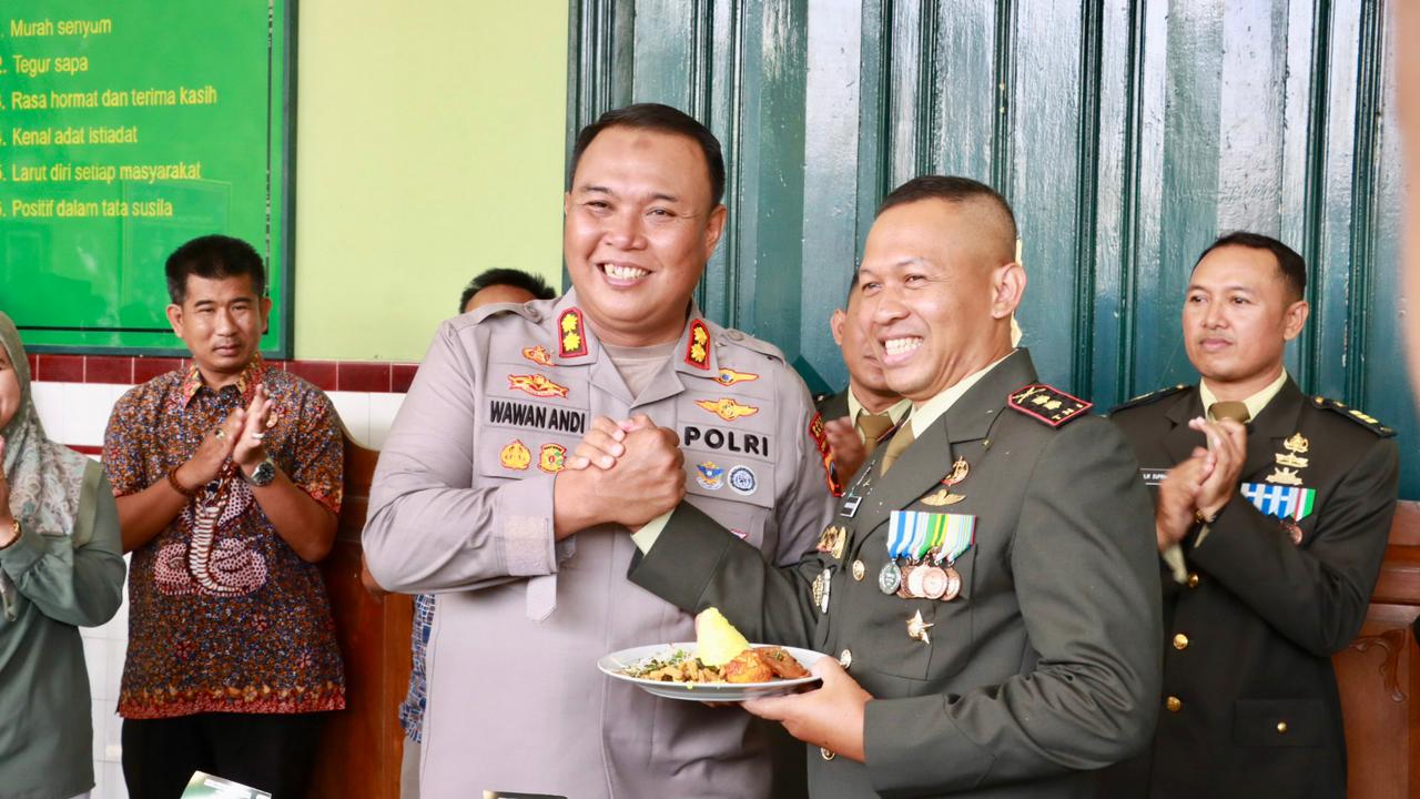 ​Kapolres Blora, AKBP Wawan Andi Susanto, didampingi Pejabat Utama (PJU) Polres Blora, berjalan kaki dari Kantor Satlantas menuju Markas Kodim 0721/Blora sambil membawa tumpeng. Kedatangan rombongan disambut hangat oleh Dandim 0721/Blora bersama para pejabat dan personel Kodim. Kejutan ini juga disusul oleh kedatangan Bupati Blora, Ketua Pengadilan Negeri Blora, serta Sekretaris Daerah (Sekda) Blora.