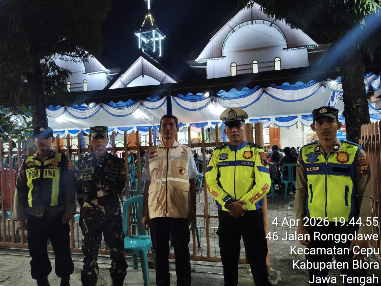*CEPU* – Ratusan jemaat memadati Gereja Katolik St. Willibrordus Cepu, Kabupaten Blora, untuk melaksanakan ibadah Vigili Paskah pada Sabtu (04/04/2026) malam. Guna menjamin kekhusyukan dan keamanan ibadah, personel gabungan dari Polsek Cepu dan Koramil Cepu melakukan pengamanan ketat di lokasi.